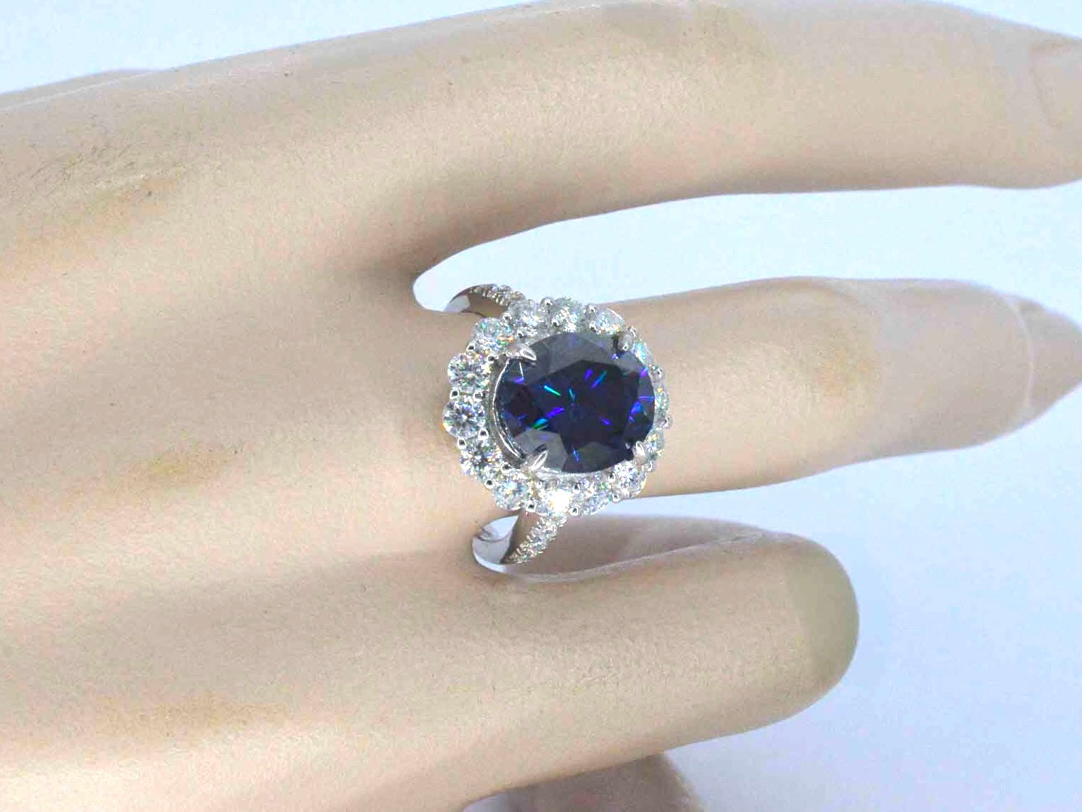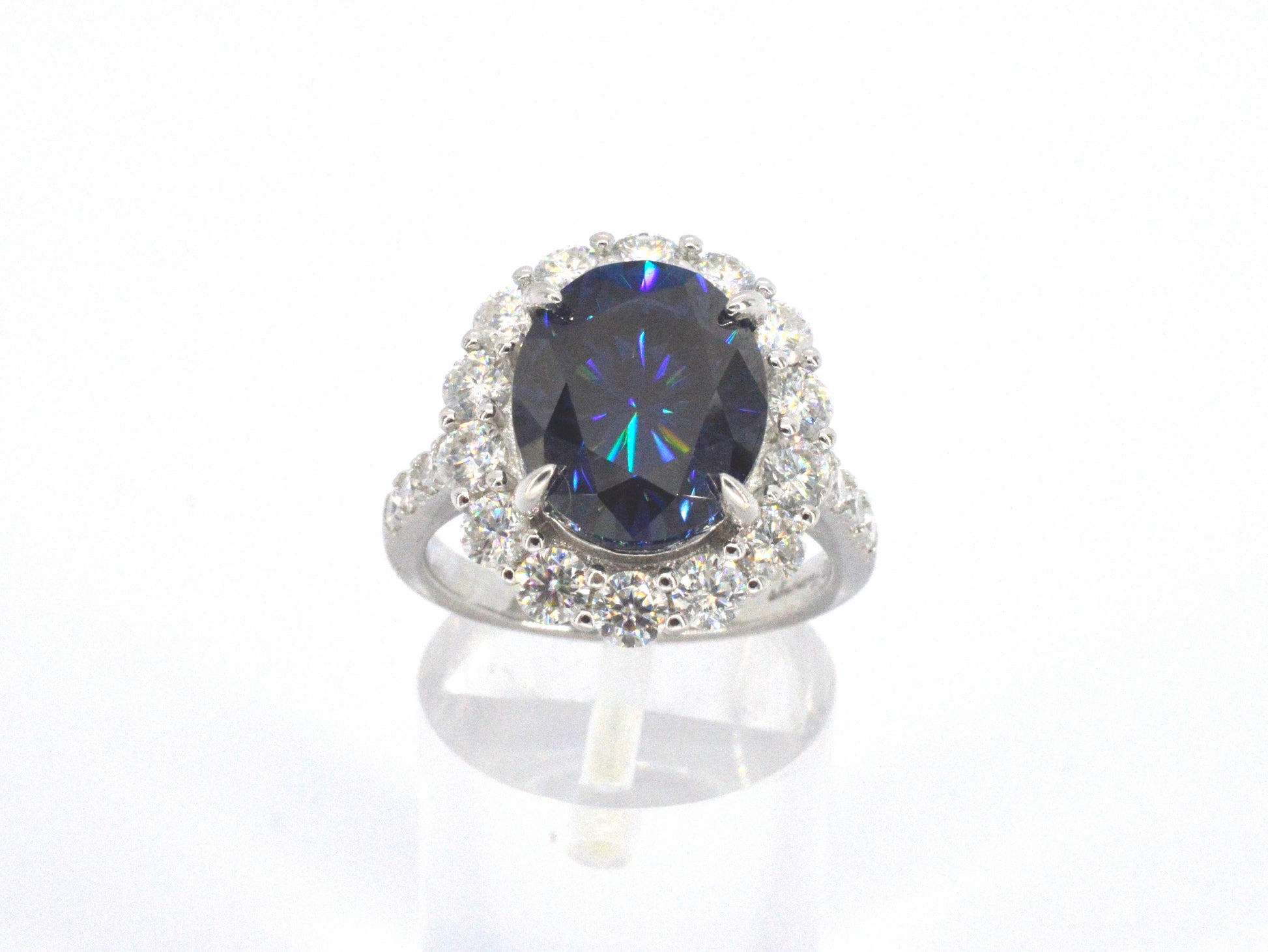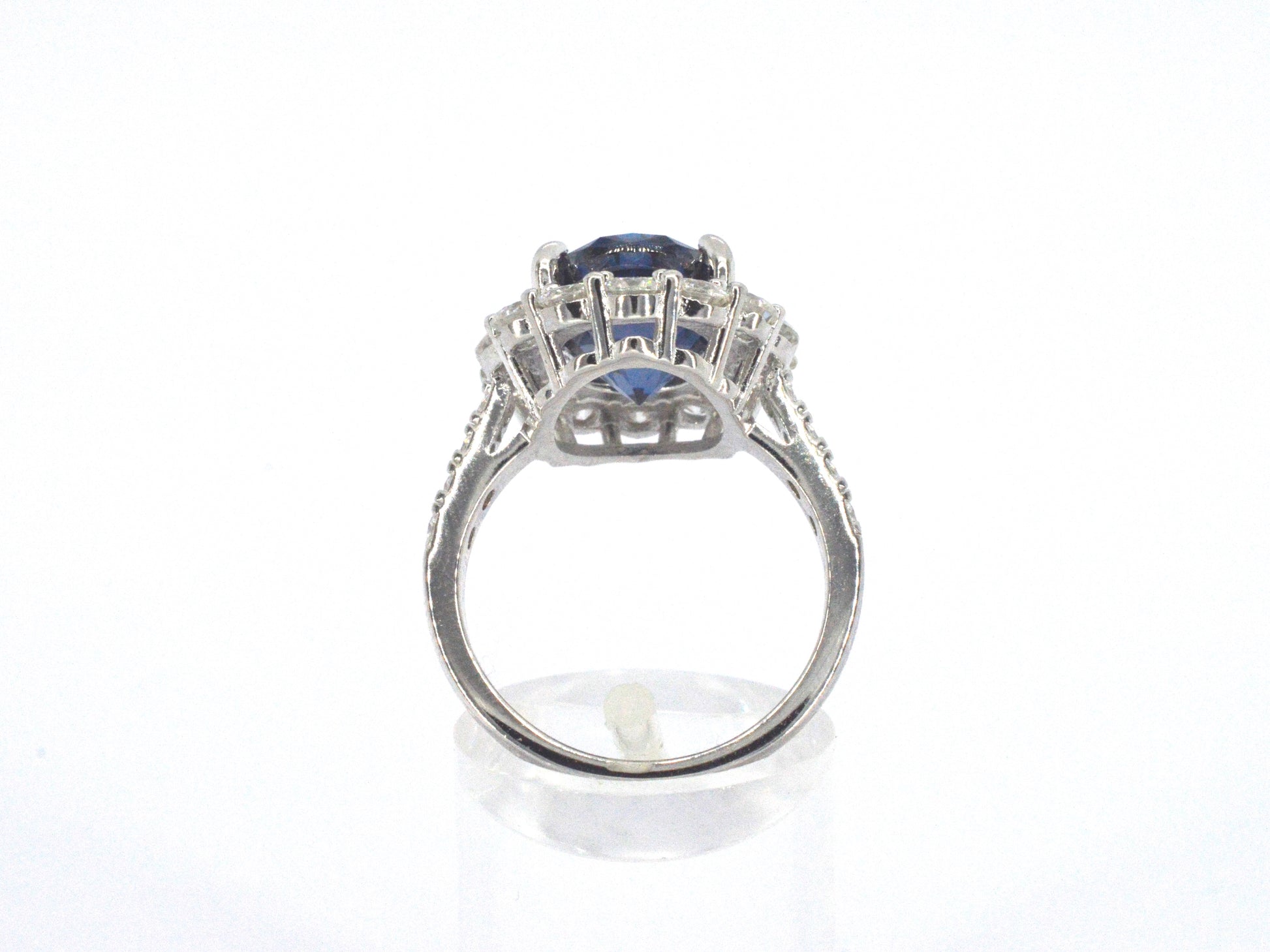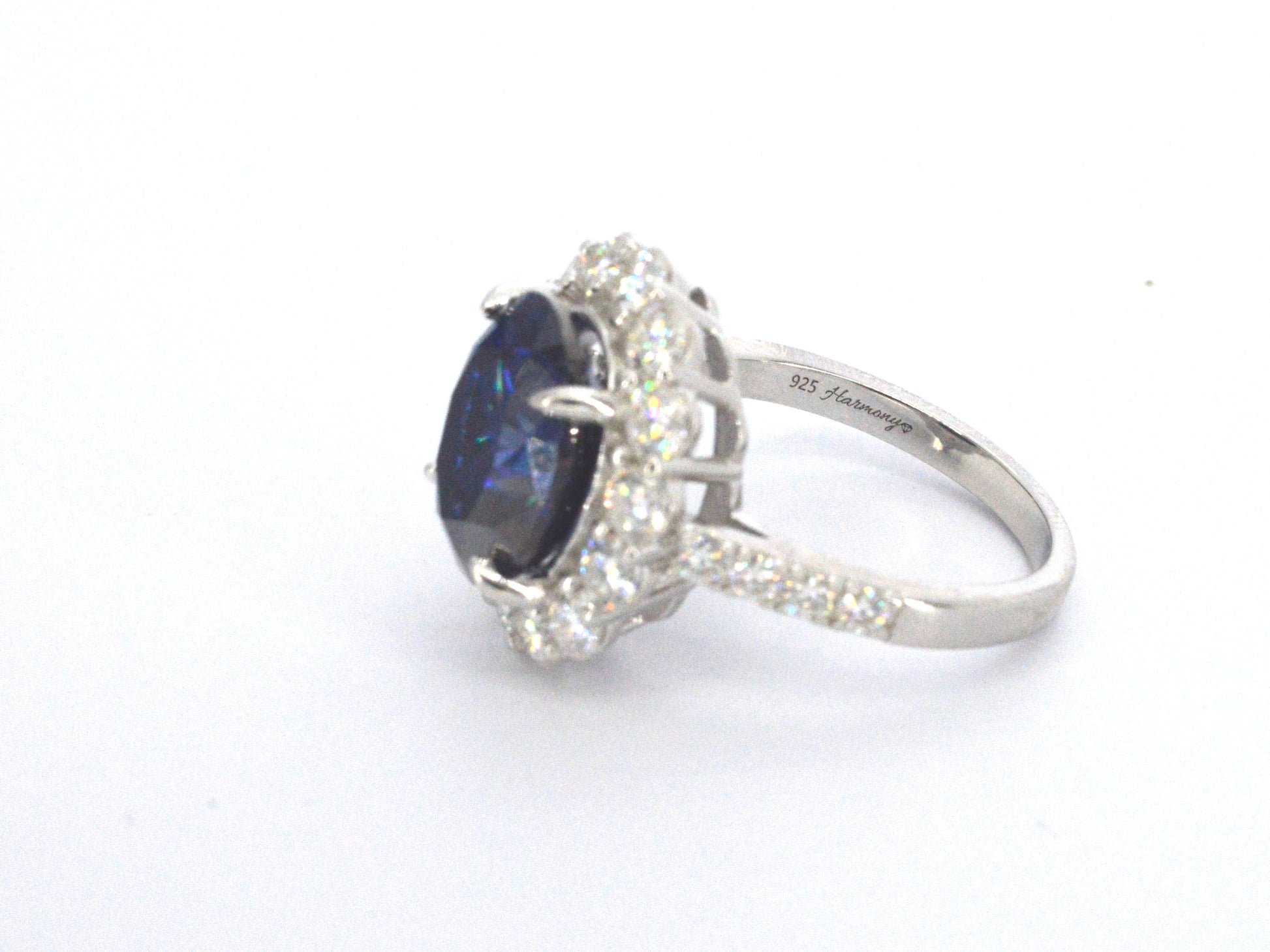 Entourage ring met witte briljanten en een grote saffier blauwe ovaal